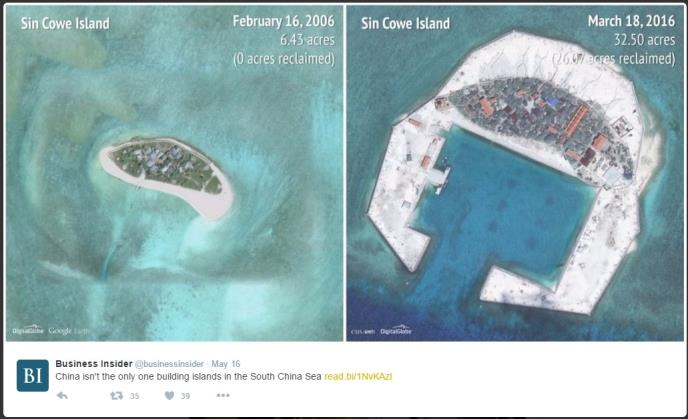 Još u aprilu američki špijunski sateliti u Južnom kineskom moru snimili su fotografije veštačkog ostrva u Nanša arhipelagu na kome će se, kako tvrde američki obaveštajci, nalaziti pomorska vojna baza.