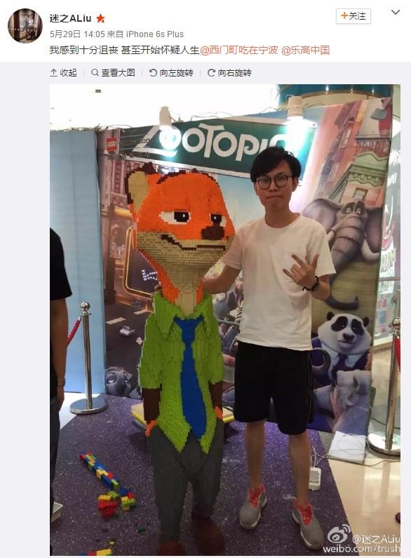 Mladić, iz grada Venzhou u istočnoj Kini, proveo je tri dana stvarajući komplikovano umetničko delo bez spavanja. On je na svom Veibo profilu objavio da se osećao frustrirano nakon nemilog događaja koji se desio tokom izložbe LEGO u gradu Ningbo.