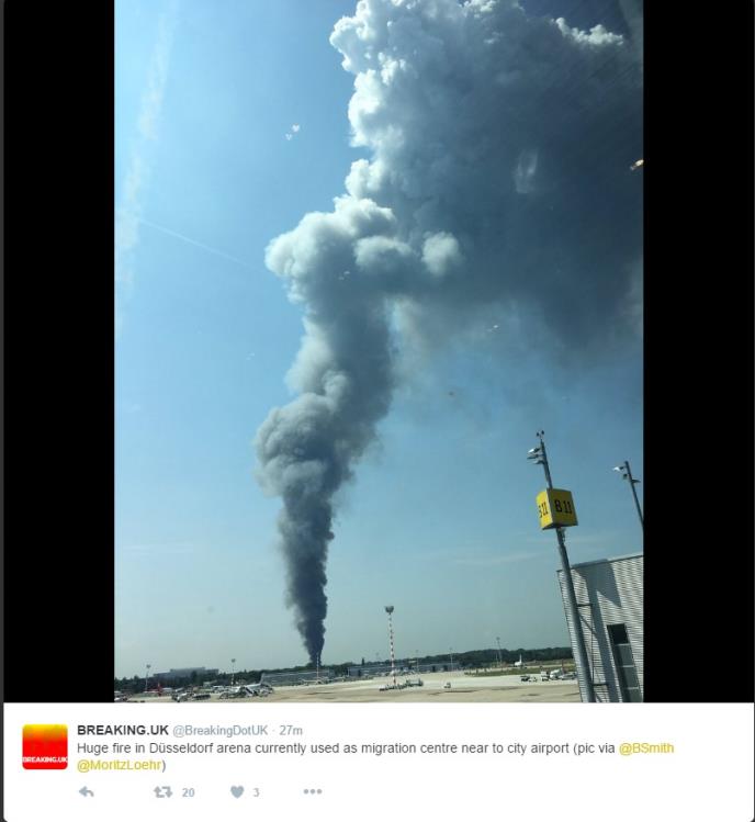 Huge plume of smoke rising into the sky above #Dusseldorf airport but fire among trees not buildings/plane pic.twitter.com/H9AVvhEJLC