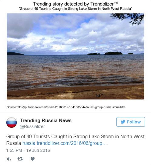 Grupa nije bila registrovana u Ministarstvu za vanredne situacije. U grupi se nalazilo od 12 do 15 dece sa pratnjom. Tokom noći oni su upali u oluju. Ima poginulih", saopštila je načelnica uprave za turizam Ministarstva kulture Karelije Jekaterina Biktimirova.Gradonačelnik Moskve Sergej Sobjanin saopštio je da su, prema prvim informacijama, poginula deca iz Moskve.