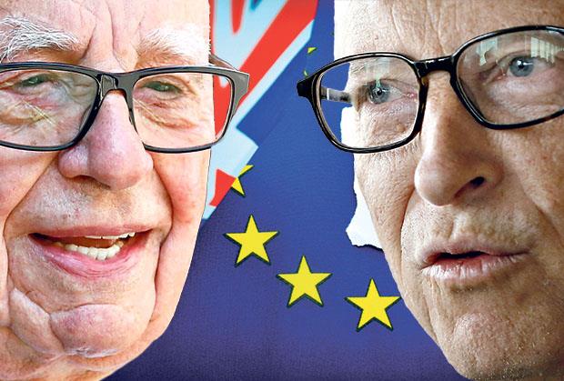 U međuvremenu, u rat za Britaniju uključuje se sve veći broj javnih ličnosti. Front onih koji se zalažu za opstanak Britanije u EU predvodi Bil Gejts, osnivač „Majkrosofta“ i najbogatiji čovek na svetu. Njegov glavni takmac i najglasniji zagovornik „bregzita“ je niko drugi do Rupert Mardok, milijarder i medijski magnat.