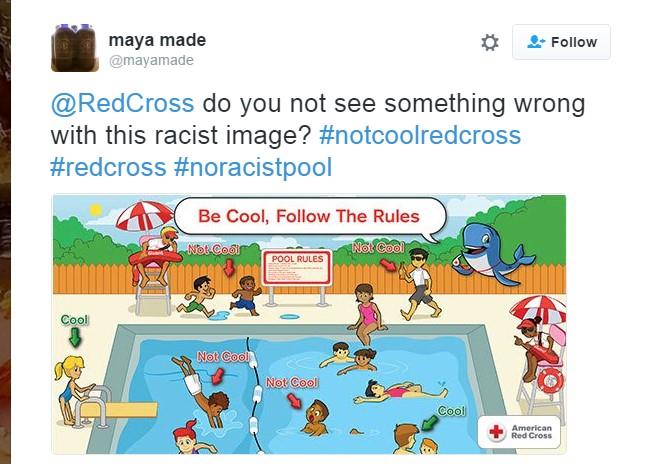 Naime, na posteru su prikazana deca različitih rasa kako uživaju na bazenu. Ali, deca koja su prikazana kao "nije kul" jer se ponašaju nepristojno, trče okolo i divljaju, uglavnom su afroamerička. Sva bela deca prikazana su kao pristojna i "kul".