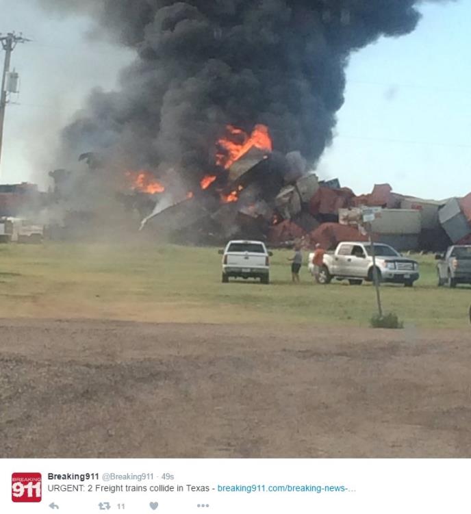 Dva teretna voza su se sudarila danas u Teksasu. Ekipe hitene pomoći i vatroghasci su upućeni na mesto nesreće.