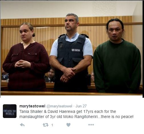 Tanja Šejler i Dejvid Haerva su par sa Novog Zelanda koji je dobio zatvorsku kaznu od 17 godina robije jer su trogodišnjeg dečaka danima tukli, gazili ga, mazali ga fekalijama i na kraju ga ostavili da umre.