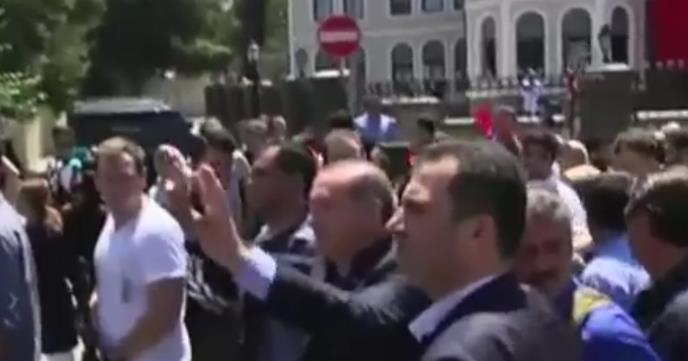 Na snimku britanske stanice BBC vidi se Erdogan kako pozdravlja građane koji ga pozdravljaju i podržavaju, što je način da pokaže da je ponovo učvrstio svoju vlast.
