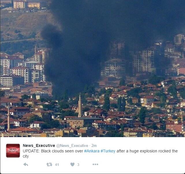 Na fotografijama i snimcima koji su se pojavili na društvenim mrežama vidi se gust dim iznad Ankare.