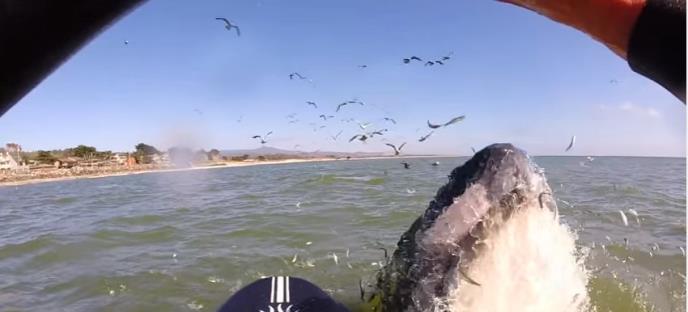 Žena je opušteno veslala na dasci u zalivu Half Mun u Kaliforniji, kad joj je odjednom iz dubina izleteo – kit, pravi, ogromni, grbavi kit iskočio je iz mora i zamalo je srušio.
