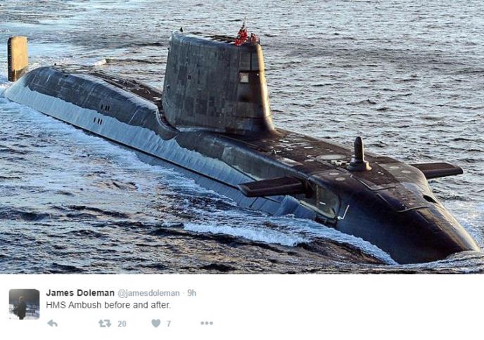Nuklearna podmornica je malo oštećena, ali je predstavnik Ratne mornarice Velike Britanije uverio da „nema oštećenja na nuklearnom reaktoru“.