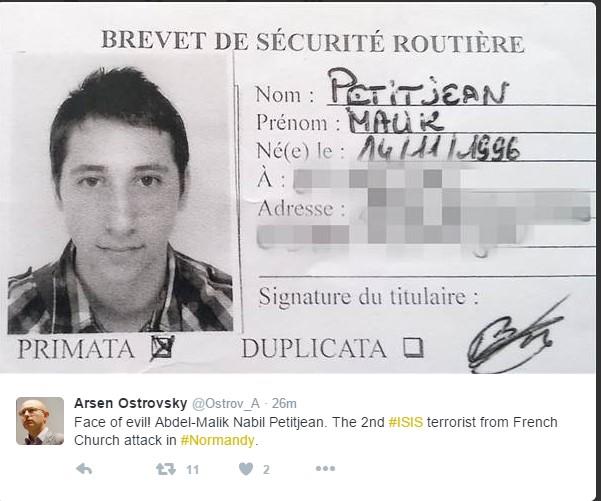 PARIZ - Francuska policija objavila je juče da je Abdel Malik Petitžan drugi džihadista Islamske države koji je odrubio glavu svešteniku u crkvi Sent Etjen Ruvr pre dva dana.