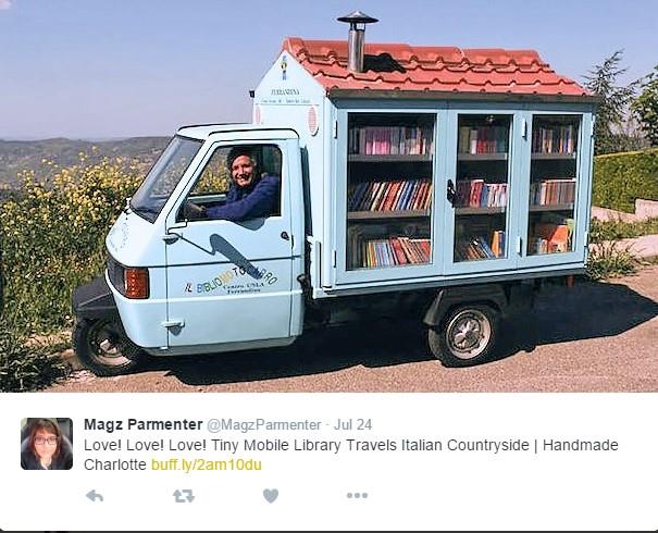 Od stare vespe napravio je pokretnu biblioteku koja sadrži oko 1.200 knjiga i od 2003. godine obilazi zabačena italijanska sela.