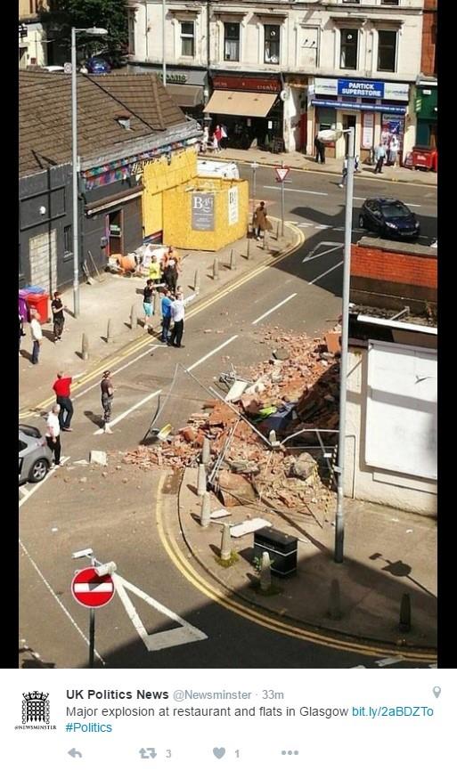 U Glazgovu je danas ođeknula eksplozija u delu grada pod nazivom Vest end, pri čemu se srušio zid od cigala na zadnjem delu lokalnog italijanskog restorana "La rivijera".