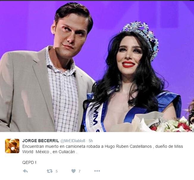 Direktor meksičkog takmičenja za izbor "Mis sveta" Ugo Ruben Kasteljanos ubijen je pošto je kidnapovan iz jednog bara, saopštile su danas lokalne vlasti.