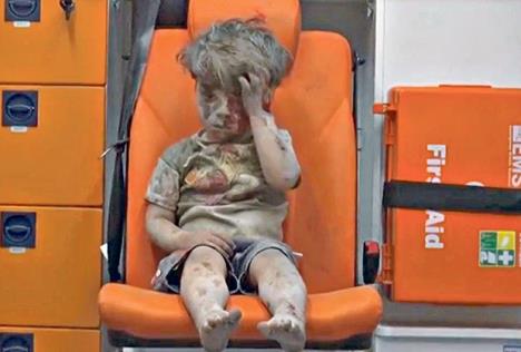 Fotografija Omrana kako ošamućen sedi u tišini u kolima hitne pomoći i posmatra vlastitu krv i haos koji se događa oko njega postao je simbol krvavih bitaka u Alepu i pojačala pozive za trenutni prekid vatre.