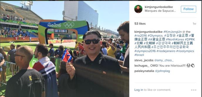Dvojnik vrhovnog vođe Severne Koreje viđen je u Riju kako razgleda znamenitosti, istražuje brazilsku kulturu i pomno prati sve nastupe Severne Koreje u atletici.