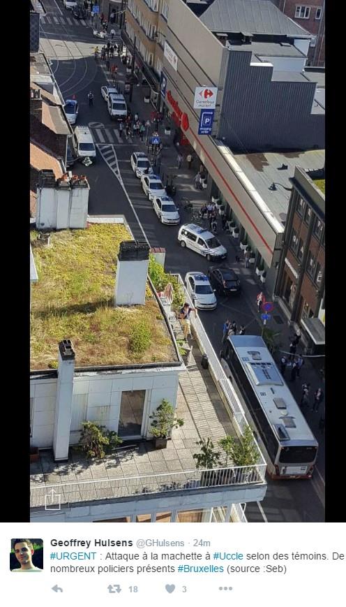 Policija je ranila ženu u predgrađu Brisela kada je pokušala da mačetom ubije troje ljudi, javljaju lokalni mediji.