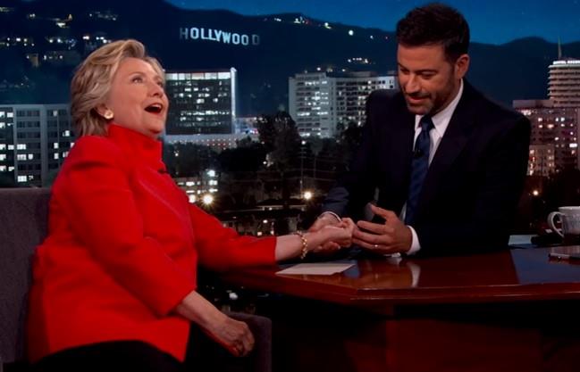 "To je postala jedna od njihovih tema. Izmerite mi puls dok razgovaramo - uverite se da sam živa", rekla je Klinton, obrativši se voditelju Džimiju Kimelu.