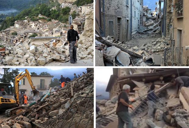 Zemljotres je zatresao Italiju tokom noći u 03:36 sati, dok su žitelji bili u dubokom snu i bio je pri površini tla, na manje od 10 kilometara, a Institut za zemljotres prijavio je 60 naknadnih potresa tokom četiri sata posle prvog, pri čemu je najjači bio jačine 5,5 stepeni.