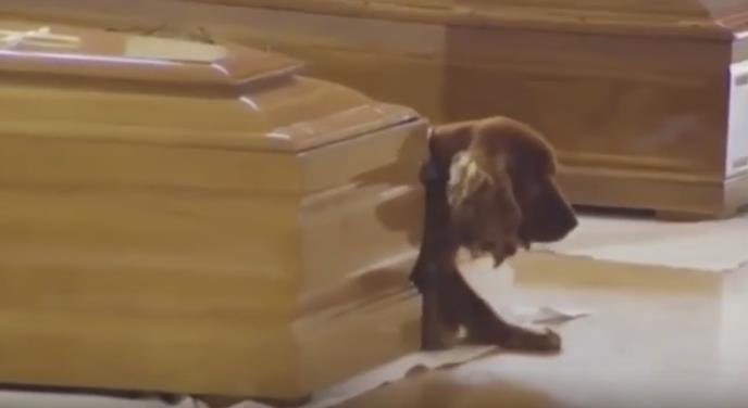Na snimku se vidi kako zlatni koker španijel leži pored kovčega svog vlasnika, stradalog u razornom zemljotresu koji je pogodio Italiju, odbijajući da ga zauvek napusti.