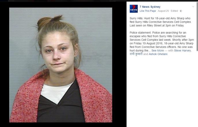 Ejmi Šarp je pobegla iz Suri Hils popravnog doma 19. avgusta posle čega je policija objavila njenu fotografiju uz molbu da se jave svi koji su devojku možda videli.