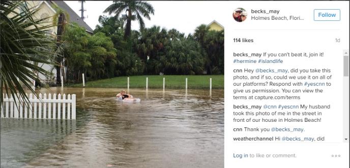 Uragan Hermina stigao je na severozapad Floride, što je prvi uragan koji je direktno pogodio ovu najsunčaniju američku državu za više od jedne decenije, ipak neki od građana Floride nisu dozvolili da ih ova nepoga preplaši pa su surfovali, velali na kajaku, odmarali na bujicama vode.