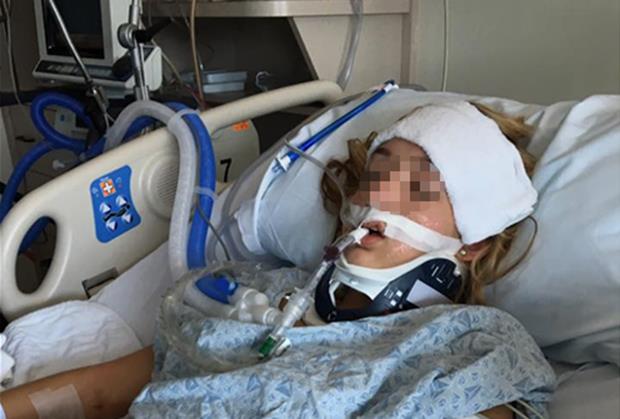 Na objavljenim fotografijama, njena 15-godišnja kćerka Rajli leži u bolničkoj postelji bez svesti, s cevi u ustima koja joj omogućava disanje.