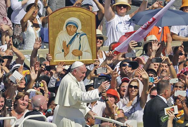 - U čast Svetog Trojstva... proglašavam Svetu Terezu od Kalkute sveticom i uvršćujem je u svece, i nalažem da je cela Crkva kao takvu poštuje - rekao je na latinskom papa Franja, poglavar Rimokatoličke crkve, tokom mise na Trgu Svetog Petra i Pavla.