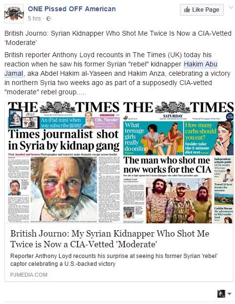 Reporter Tajmsa Entoni Lojd, kog je u Siriji pre dve godine zarobila grupa otmičara, iznenadio se kad je na snimku grupe pobunjenika, koju podržavaju Zapad i CIA; prepoznao svog otmičara i mučitelja, koji je, očigledno, postao američki saveznik.