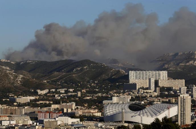 Visok stub dima vidljiv je iz centra Marseja, a avioni za gašenje požara kružili su u nastojanju da što više savladaju vatru pre no što padne noć kad ne mogu da lete.