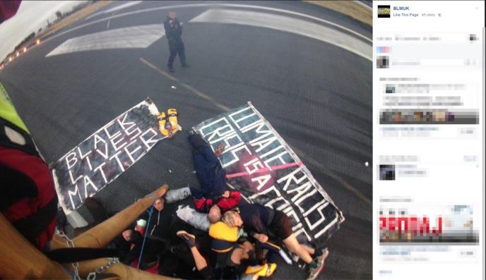 "Ušli su na pistu sa doka, pomoću gumenog čamca. Sada ih je policija okružila i nisam siguran da li su lancima vezani jedni za druge, ali drže se zajedno", izjavio je za te novine svedok koji je želeo da ostane anoniman.