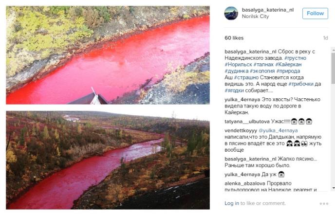Stanovnici Norliska grada u Sibiru bili su u čudu kada je voda u lokalnoj reci Daldikan iznenada pocrvenela.