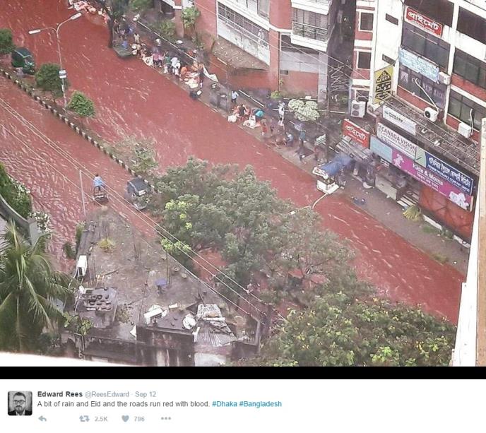 Ulice Dake u Bangladešu pretvorile su se u "reke krvi" nakon poplave koja je izbacila krvave otpadne vode životinja pobijenih povodom Islamske proslave Kurban-bajrama.