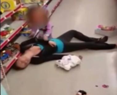 Jezivi snimak snimljen je u prodavnici u Masačusetsu (SAD), gde se jedna majka predozirala i onesveštena ležala na podu, dok je dvogodišnja ćerka svim silama pokušavala da je probudi.
