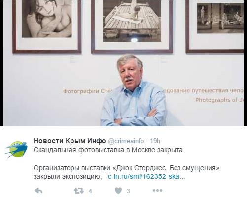 Izložba američkog fotograf Džoka Stjurdžsa, poznatijeg po svojim radovima koji karakterišu tinejdžersku golotinju, zatvorena je u Moskvi nakon što su neki demonstranti blokirali mesto i optužili umetnika za snimanje dečije pornografije.