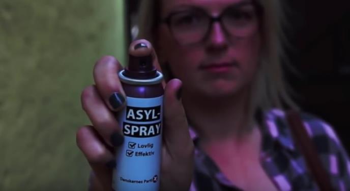 Desničarska Danskernes stranka, koja se reklamira kao stranka nacionalnih demokrata, podelila je gotovo 150 bočica spreja na ulicama lučkog gradića na jugoistoku Danske. S obzirom da je suzavac u Danskoj ilegalan, stranka se koristila lakom za kosu kako bi naglasila mržnju prema migrantima u svojoj kampanji.