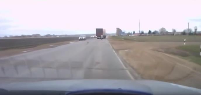 U sledećem snimku može se videti neobični čovek u kaputu, poput onih kakve nose naučnici, koji se iznenada pojavljuje na putu pri čemu ga je vozač kamiona jedva izbegao.