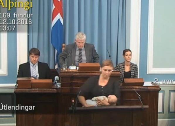 Poslanica islandskog parlamenta Unur Bra Konradsdotir držala je govor istovremeno dojeći svoju mesec i po dana staru ćerku u živom prenosu na televiziji.