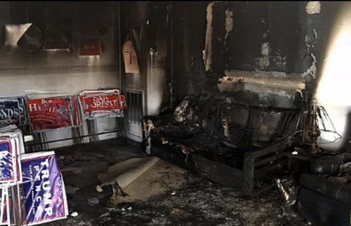 U lokalni štab Republikanske partije u gradu Hilsborou, u Severnoj Karolini, tokom noći u subotu na nadelju kroz prozor na ulazu u zgradu ubačen je zapaljivi materijal, saopštile su lokalne vlasti.