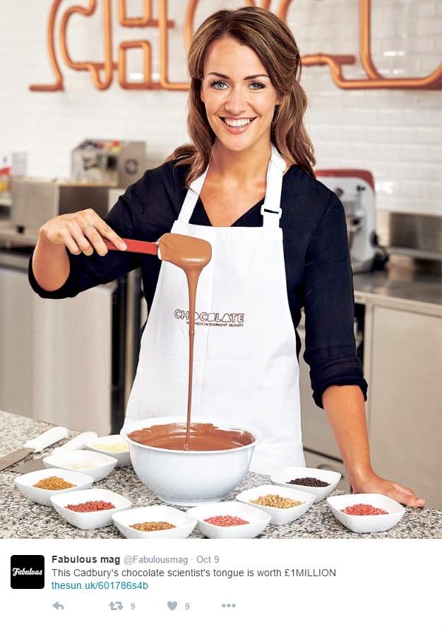 "Kada kažem ljudima da dobijam platu zato što jedem čokoladu, često mi ne veruju", priča Hejlejg Perks. Ali ona zna svoj posao. Kao naučnica zadužena za čokoladu u fabrici Kedburija, kaže da je toliko čokolade pojela da često zna recept po kom je napravljena neka čokolada čim je proba.