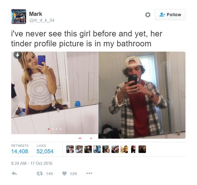 Kovalčik je "krčio" svoj put na Tinderu kada je naišao na profilnu fotografiju Džene Zagrodniček i to iz njegove kuće, tačnije kupatila.