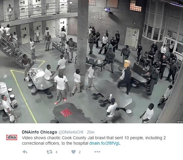 Najmanje 20 zatvorenika i dva čuvara povređeno je u seriji tuča u zatvoru u Čikagu, preneo je list Čikago tribjun.