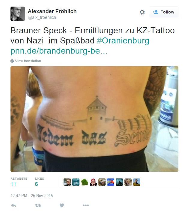 ISTETOVIRAO AUŠVIC NA LEĐIMA: Nemački političar osuđen na 8 meseci zatvora zbog nacističke tetovaže