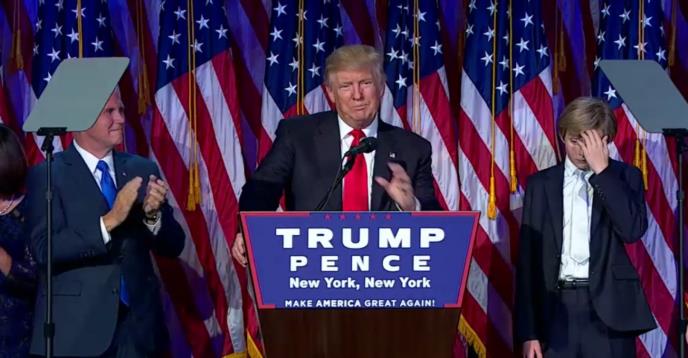 "Biću predsednik svih građana. Ova pobeda mi mnogo znači. Za one koji su me odabrali, tražim vašu pomoć kako bismo zajedno našu veliku zemlju učinili još boljom. Milionima vrednih žena i muškaraca, poručujem: Služiću Vama, narodu. Ova zemlja ima odličan potencijal, a zajedno ćemo učiniti da bude još bolja. Svi vi imate potencijal, i iskoristićemo ga zajedno. Gradićemo mostove, aerodrome, bolnice, škole, obnovićemo infrastrukturu i dati posao milionima koji ga nemaju", rekao je Tramp.