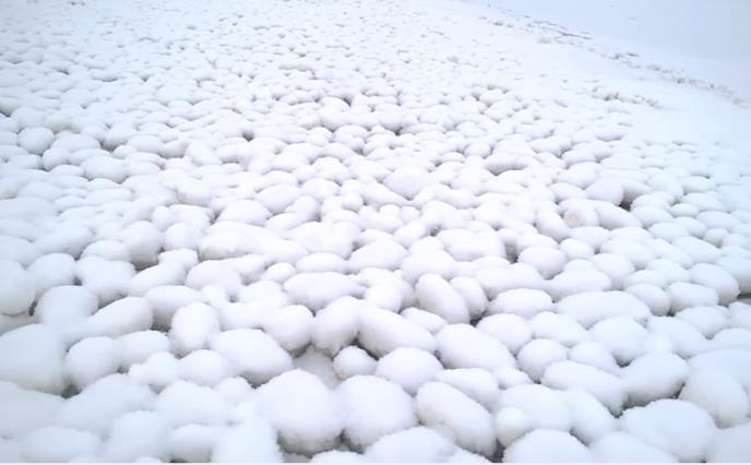 Saradnja vetra, vode, leda i hladnoće dovela je do pojave retkog fenomena u kom su formirane gotovo savršeno okrugle grudve koje su prekrile kilometre i kilometre obale Opskog zaliva, u Arktičkom krugu.