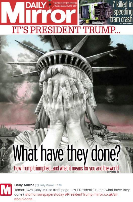 Britanski Gardijan je objavio Trampovu sliku uz reči: "Tramp je pobedio, a sada svet čeka".