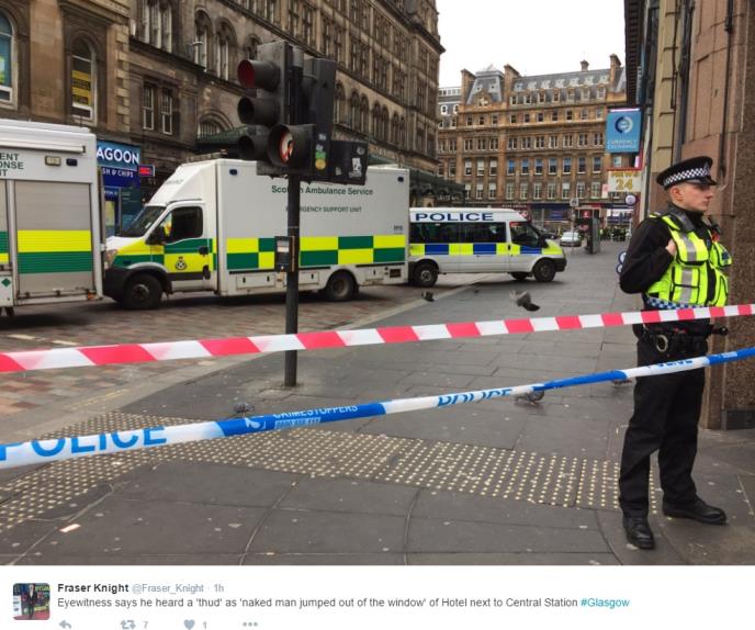 Policija je zabranila pristup Centralnoj železničkoj stanici u Glazgovu nakon što je goli muškarac pao sa prozora hotela.