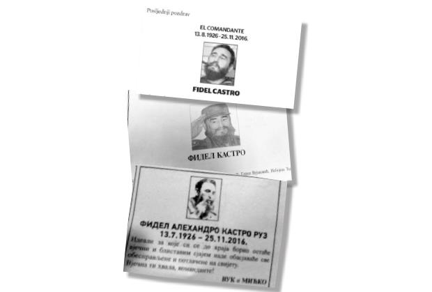 PODGORICA/BANJALUKA - Čitulje za preminulog kubanskog lidera Fidela Kastra pojavile su se i u pojedinim balkanskim medijima - u dva crnogorska lista i jednom banjalučkom.