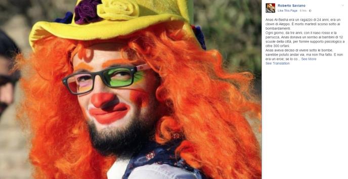 "Živeo da deca bi zasmejavao decu i pružao im sreću u najcrnjem i najopasnijem mestu", napisao je Mahmud Al-Baša, koji se predstavio kao brat poginulog klovna na FB.