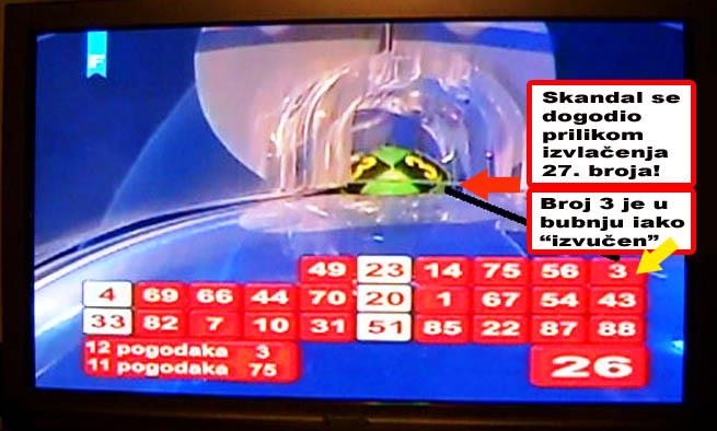 Naime, kao 21. izvučeni broj je prikazan broj 3, da bi se broj 3 ponovo pojavio prilikom izvlačenja 27. broja. Kad su primetili što su uradili, broj 3 je ekspresno vraćen u bubanj.