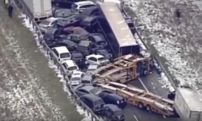 (VIDEO) SMRTONOSNI LANČANI SUDAR: Čak 40 vozila učestvovalo u nesreći u Mičigenu