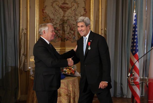 Keri, koji se nalazi u oproštajnoj poseti Evropskoj uniji, dobio je orden Velikog oficira Legije časti. Američki ministar ima porodične veze s Francuskom jer je njegov blizak rodjak bivši francuski ministar za životnu sredinu Bris Lalond.